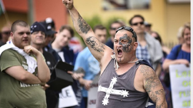 And heres vision of a man from todays paper, a man engaged in violent racist protest, another great advertisement for Ned Kelly: