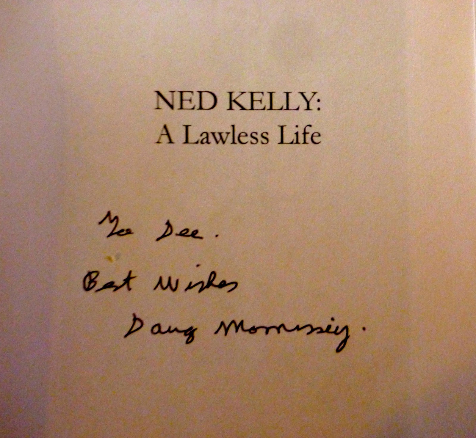 On Saturday June 6th I went back to Bendigo to attend a Presentation on Ned Kelly by Doug Morrissey and Leo Kennedy, and afterwards to the formal launching of Morrisseys book, “Ned Kelly: A Lawless Life”. These two events were linked to a course offered by Latrobe University called “Exhibiting Culture: Imagining Ned”, designed to make use of the Bendigo Art Galleries Exhibition, “Imagining Ned”, which runs till the end of this month. I visited the Exhibition itself a few weeks ago.