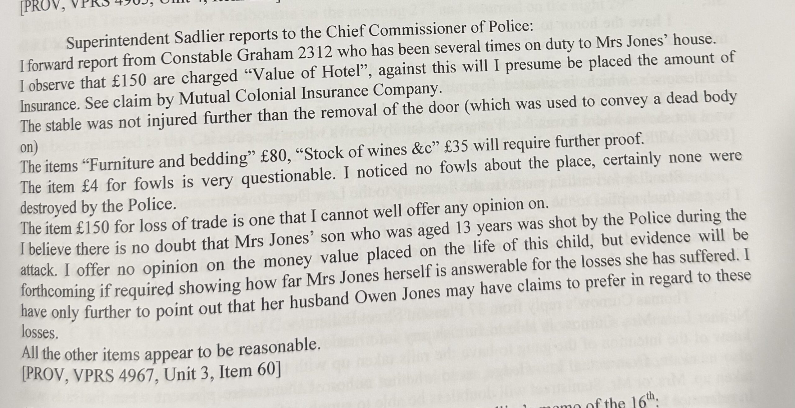 I was made aware that deceased was lying wounded in the back yard kitchen. I then endeavored to avoid the firing into this kitchen. By J. Sadlier, magisterial inquiry. https://trove.nla.gov.au/newspaper/article/240935264