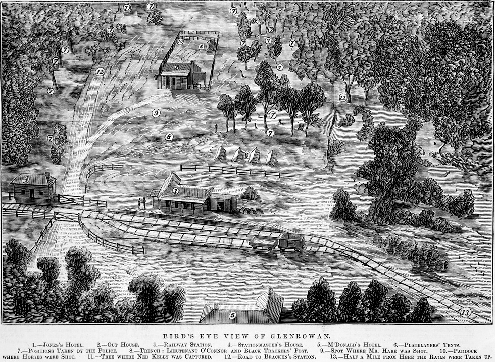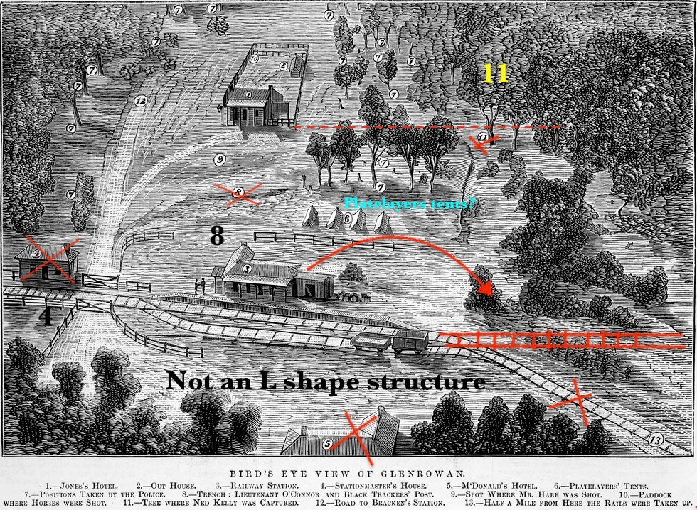 This video tackles many myths about Glenrowan, some in passing, but a couple of highlights are the close examination of how Ned Kelly most likely escaped from the Inn into the bush while some 14 police were still in the process of trying to surround the Inn in the dark; why the Qld blacktrackers were stationed in a culvert facing the Inn and why this was an excellent position; a clearly explained debunk of the tale that Sgt Steele knowingly fired at a woman carrying a child; and a whole lot more.