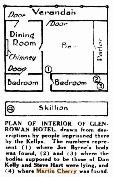 As for Cherry being attended by Larkins in the hotel’s kitchen, I think he was big-noting himself after the event – it is, however, the closest thing to a solid claim of seeing Cherry shot inside the inn out of all the many more dubious pieces of hearsay that are around, since he filtered it through an investigating cop. My soon-to-be blog post on Cherry’s location will present every snippet, and weight them up in the balance…